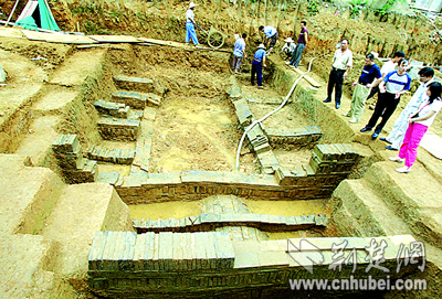 負責施工的武漢市文物考古研究所許主任說,經(jīng)鑒定,瓷片屬于宋代,可能是墓主的后人留下的。挖了半個月,至今仍未掘出古墓的整個墓緣?脊艑<曳Q,墓室規(guī)模龐大,結(jié)構(gòu)巧妙,墓主應是南北朝時期很有身份地位的貴族。