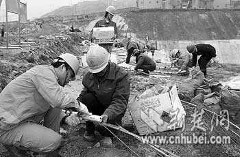 為確保爆破萬無一失,大年初四,公司總工程師李宏兵就從重慶趕到工地督戰(zhàn)!氨齐y度并不小,我們不敢有絲毫的馬虎!崩詈瓯f,防滲墻高24米,墻體不均質(zhì)、不等厚,爆破時(shí)既要將防滲墻混凝土炸碎,又要將預(yù)埋灌漿鋼管炸斷,爆破難度可想而知。