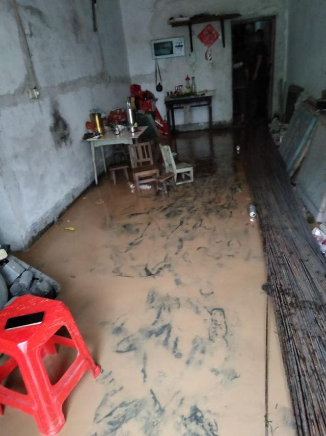在柳林街道與陳湖咀村主干道交匯處,由于雨量過大,路面積水不斷上漲,湍急的洪水將排洪涵管沖破,整個(gè)路面底部出現(xiàn)垮塌,整排房屋隨時(shí)有塌陷危險(xiǎn),所幸排查轉(zhuǎn)移及時(shí)到位,未發(fā)生人員傷亡。