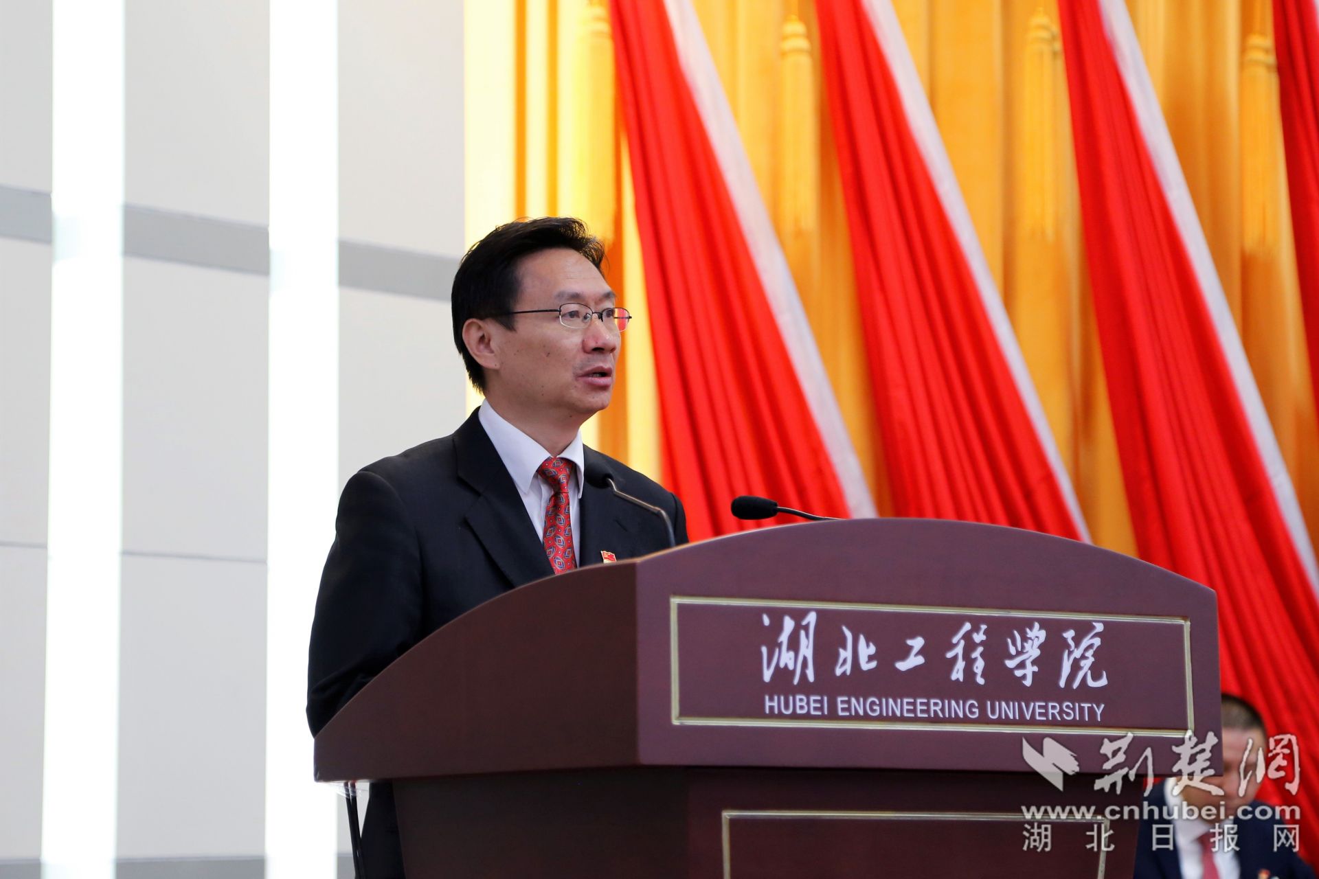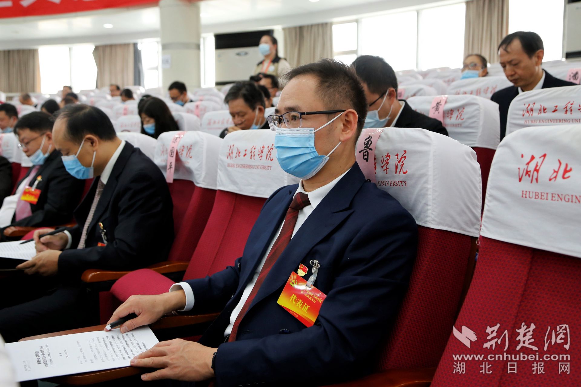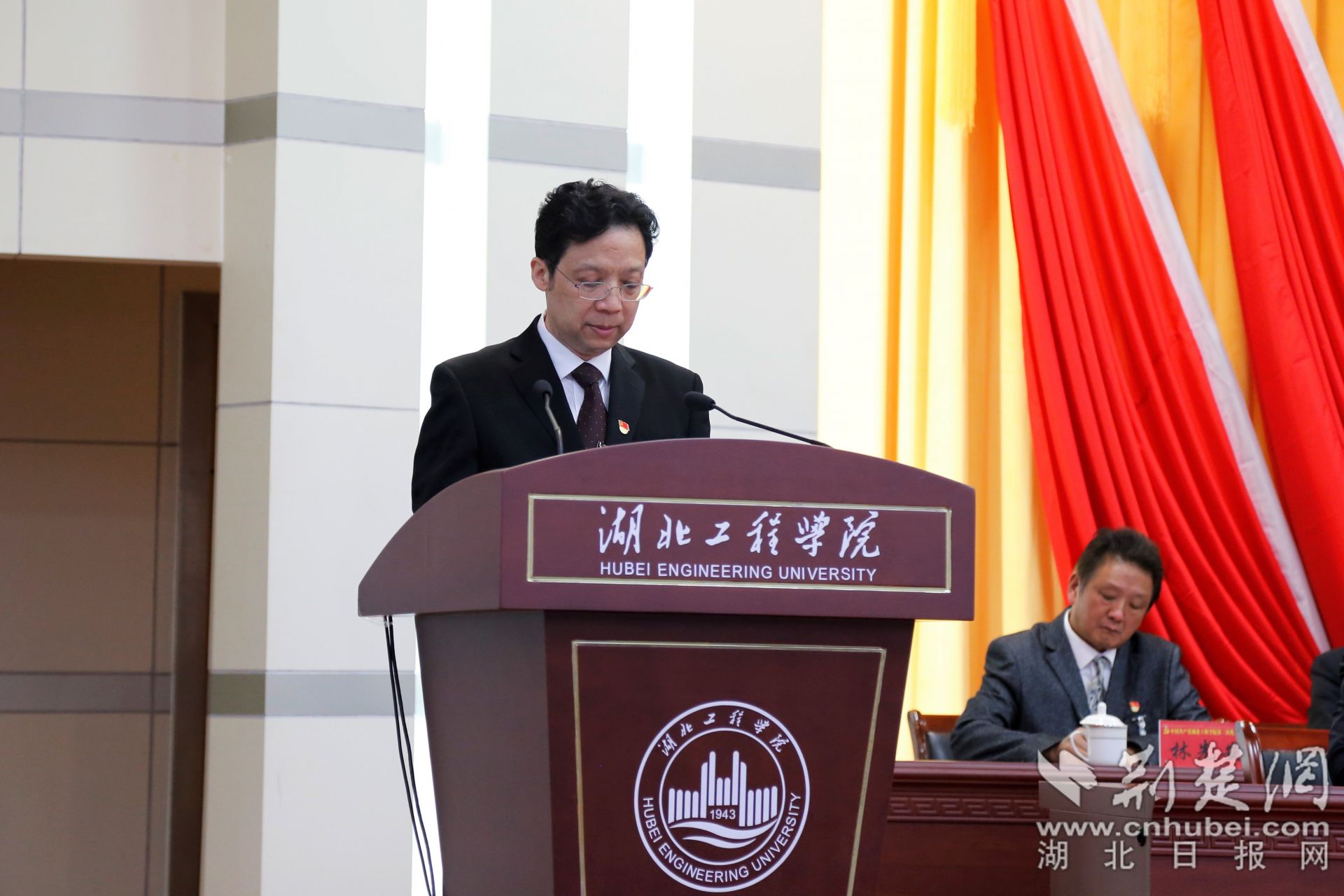 湖北工程學(xué)院黨委書記彭瑜作工作報(bào)告。記者魯偉龍 攝