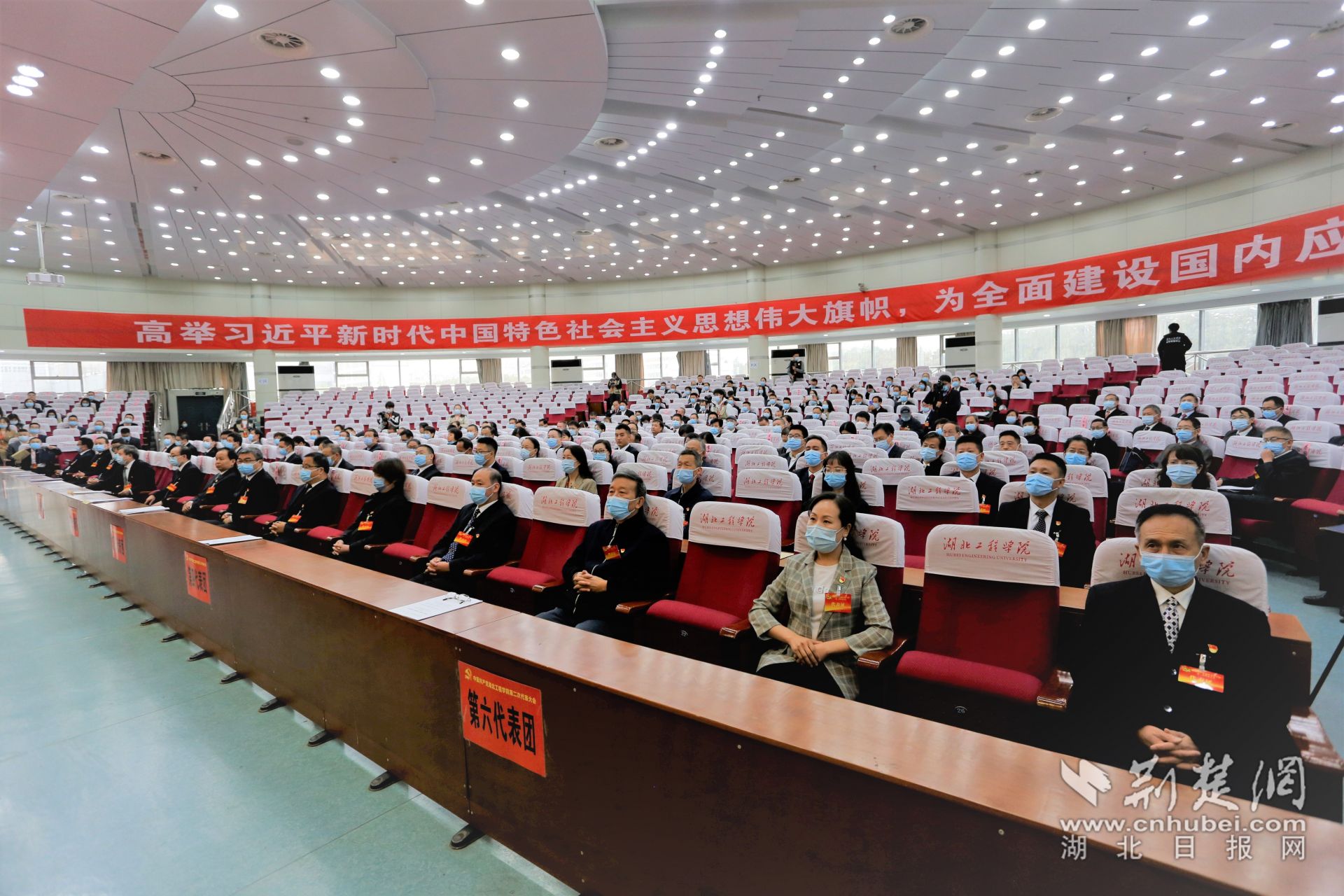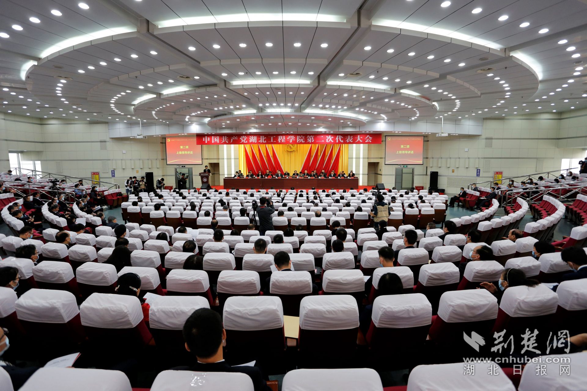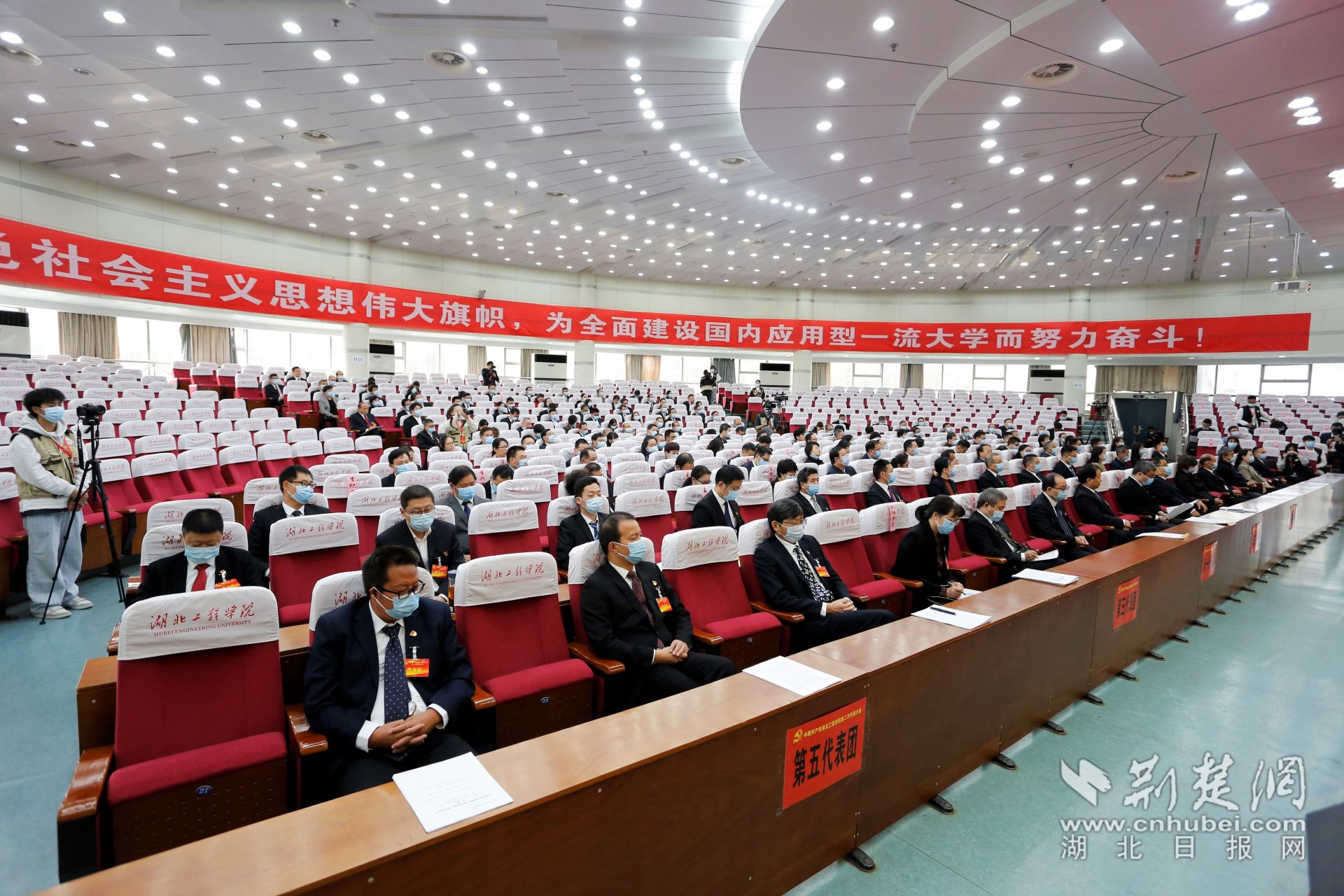 湖北工程學(xué)院黨委書記彭瑜作工作報(bào)告。記者魯偉龍 攝