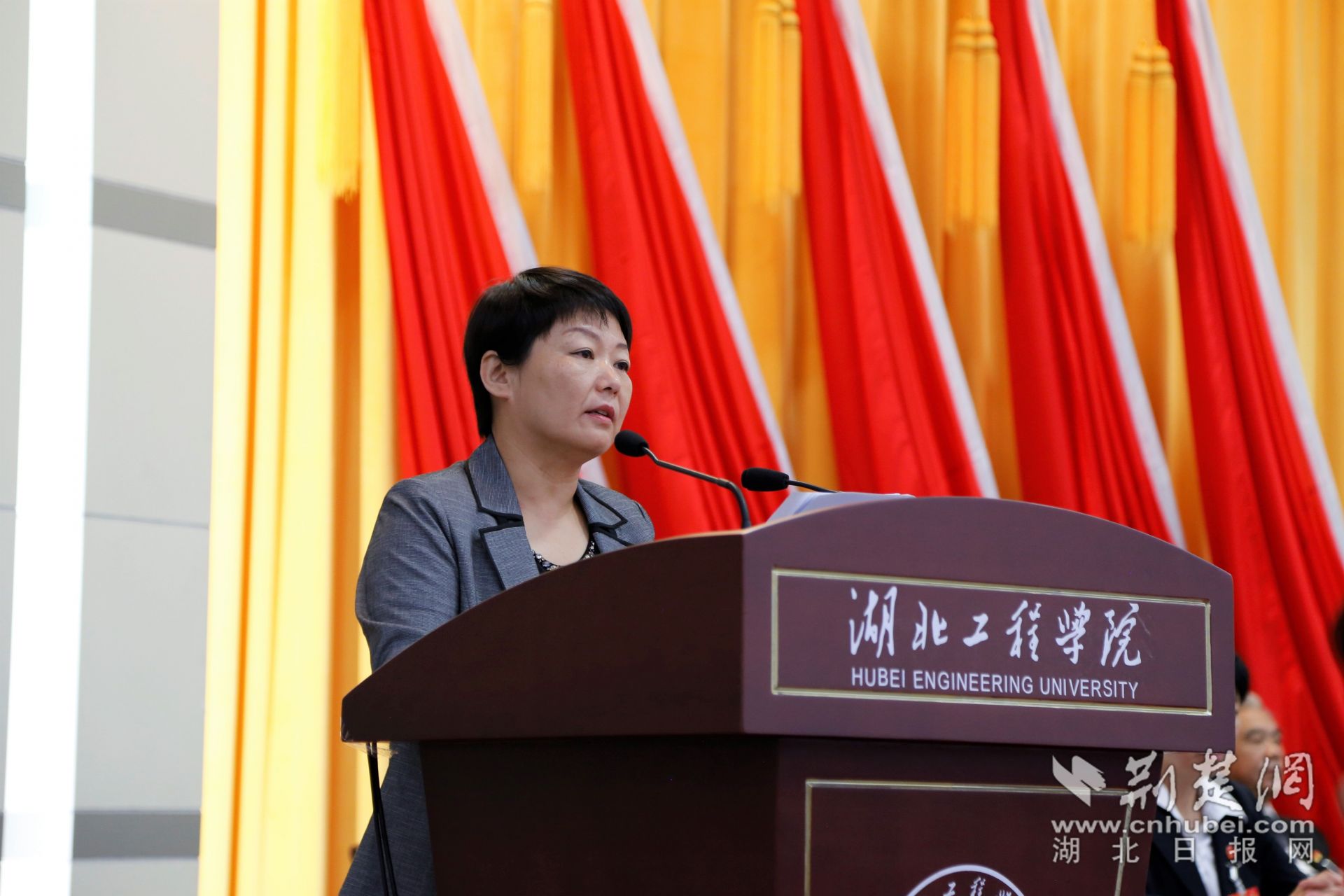 中共孝感市委常委、組織部長(zhǎng)杭鶯代表孝感市委市政府向大會(huì)致辭。記者魯偉龍 攝