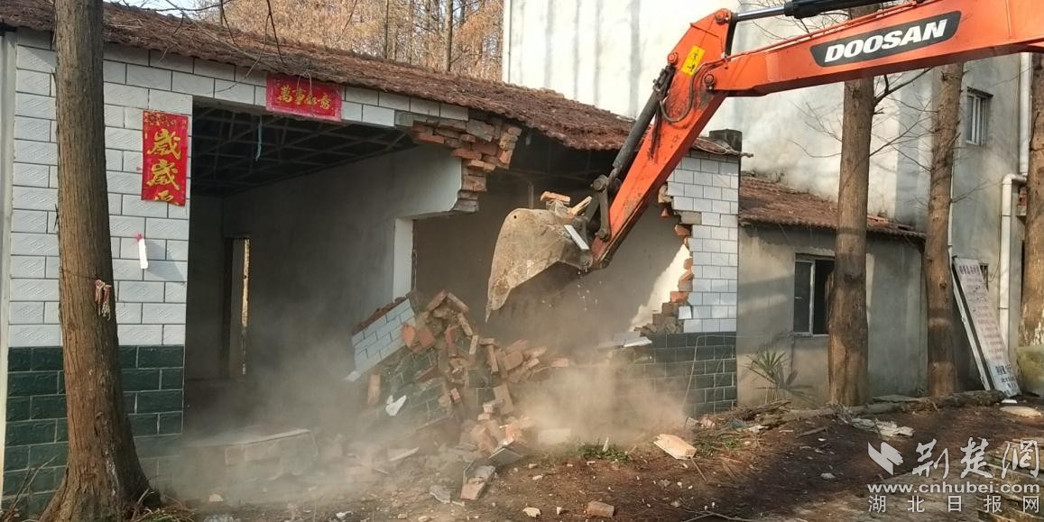 朱湖辦事處項(xiàng)目建設(shè)區(qū)正在進(jìn)行房屋拆除。萬(wàn)清平 供圖