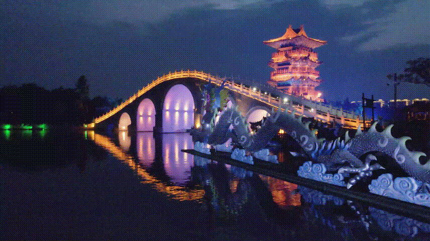 夜晚的清明上河園同樣精彩紛呈,數百萬盞花燈點亮了虹橋和汴河,展現出大宋不夜城的璀璨夜景。此外,大型水上實景演出《大宋·東京夢華》每晚上演,為游客們呈現了盛世畫卷。