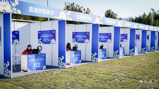 “今天的優(yōu)惠數(shù)量有限,喜歡的寶寶趕緊下單”“倒計時3、2、1,上鏈接……”環(huán)形補光燈前,15名“菊花露”帶貨主播拿出“看家本領”對著直播設備賣力地“吆喝”著,這里不是網(wǎng)紅直播間,而是競賽的現(xiàn)場。