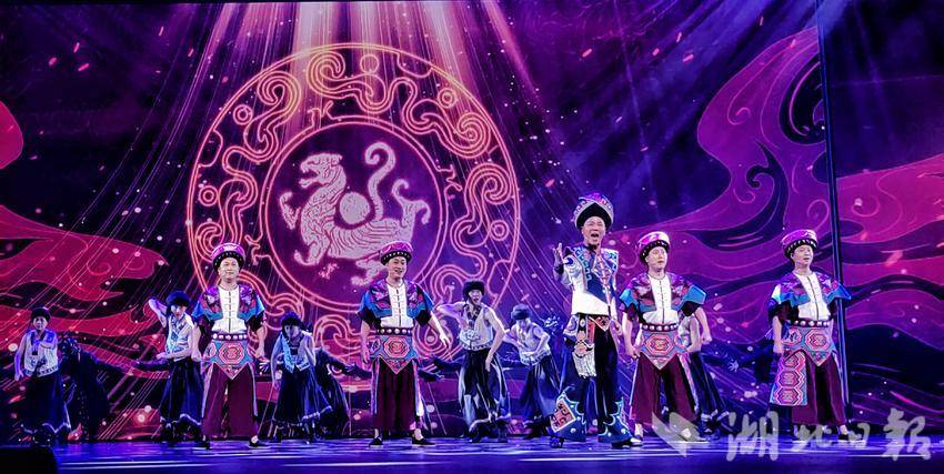 在鄂西的群山碧水間,絢麗多彩的巴楚文化融合相生,飽含土苗風情的原生態(tài)民歌代代相傳。當晚,“土家漢子”組合和獲得湖北省中青年藝術表演人才大賽的各京劇院團的獲獎選手們共同帶來的歌舞《巴虎楚風》精彩亮相。當京劇攜手原生態(tài)民歌融合創(chuàng)新、當鄂西民歌遇上荊楚國粹,剛柔并濟,碰撞出了驚艷的藝術火花,贏得在場觀眾陣陣掌聲。