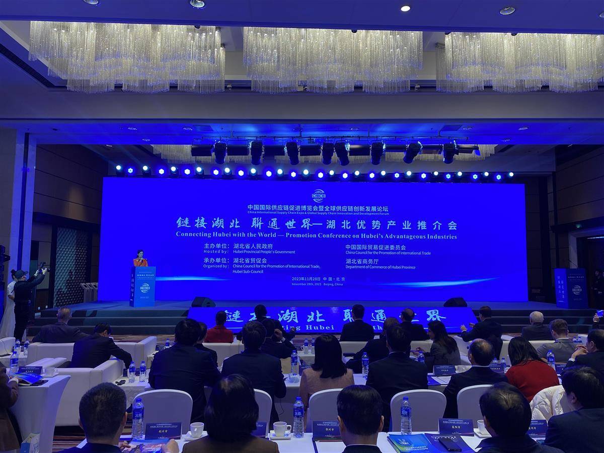 鏈接湖北,聯(lián)通世界。11月28日,借首屆中國(guó)國(guó)際供應(yīng)鏈促進(jìn)博覽會(huì)開(kāi)幕東風(fēng),湖北省政府、中國(guó)國(guó)際貿(mào)易促進(jìn)委員會(huì)在北京聯(lián)合舉辦“湖北優(yōu)勢(shì)產(chǎn)業(yè)推介會(huì)”,全球400多位嘉賓齊聚一堂,暢敘友誼、共謀發(fā)展,推動(dòng)湖北企業(yè)積極融入全球產(chǎn)業(yè)鏈、供應(yīng)鏈?!?/p>
