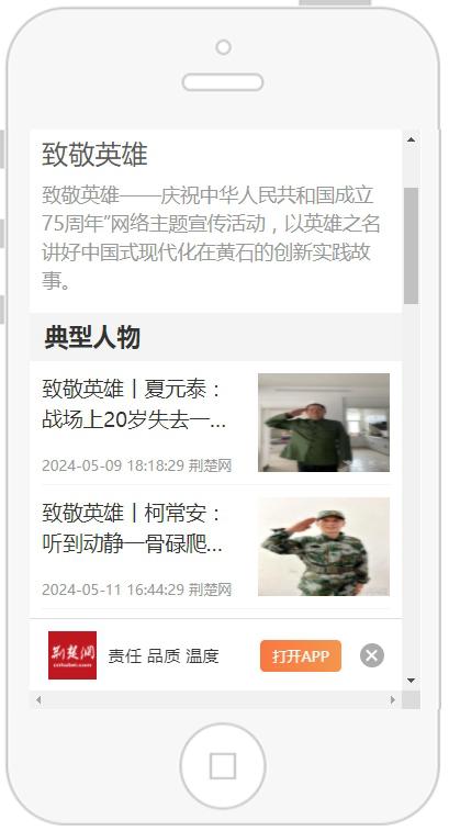 為向歷史開掘精神資源,營造崇尚英雄、學習英雄、關愛英雄的濃厚氛圍,黃石市委網(wǎng)信辦、市退役軍人事務局聯(lián)合荊楚網(wǎng)(湖北日報網(wǎng))啟動《致敬英雄》大型網(wǎng)絡專題宣傳。