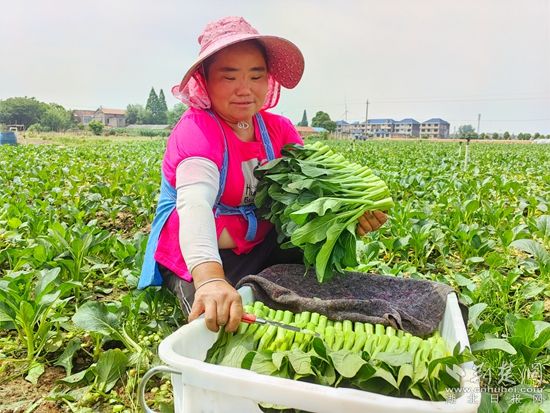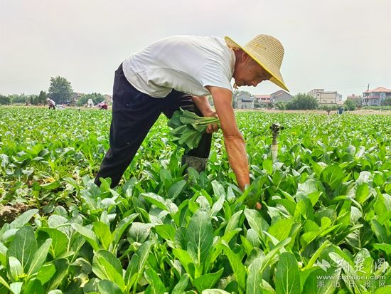 在黃梅縣分路鎮(zhèn)鼎旺農(nóng)業(yè)農(nóng)民專業(yè)合作社廣東菜心種植基地,近100名割菜工手戴指甲刀,在技術(shù)顧問呂美標(biāo)的指揮下,分散到各個(gè)地塊,不一會兒,路兩旁就整齊堆滿了菜心,合作社社長石成旺拿出手機(jī)聯(lián)系車輛,經(jīng)過整理、清洗,剛收割的菜心就被送到凍庫,準(zhǔn)備第二天運(yùn)往國內(nèi)外。