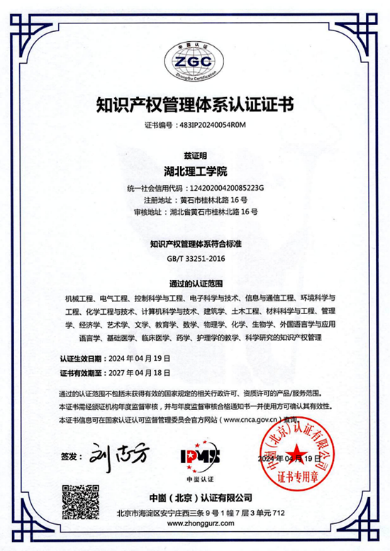 通過知識產(chǎn)權(quán)管理體系認(rèn)證,標(biāo)志著湖北理工學(xué)院在知識產(chǎn)權(quán)創(chuàng)造、運(yùn)用、保護(hù)、管理邁上了新臺階。接下來,湖北理工學(xué)院將以通過知識產(chǎn)權(quán)管理體系認(rèn)證為契機(jī),緊緊圍繞應(yīng)用型高校建設(shè)與知識產(chǎn)權(quán)事業(yè)高質(zhì)量發(fā)展主題,進(jìn)一步激發(fā)創(chuàng)新活力,促進(jìn)學(xué)校知識產(chǎn)權(quán)創(chuàng)造質(zhì)量、運(yùn)用效益及管理水平和服務(wù)能力的全面提升。