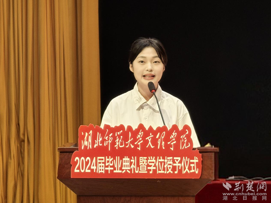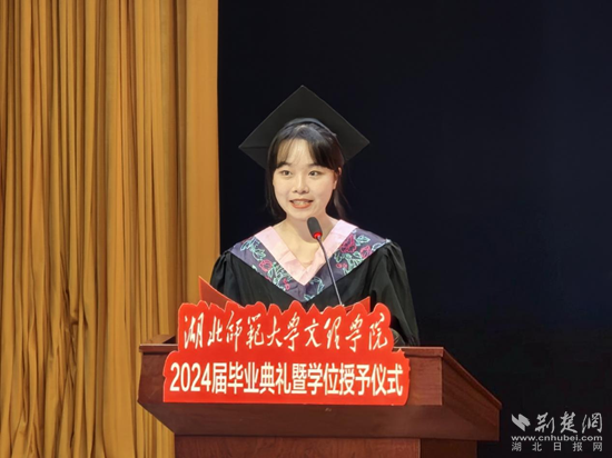 根據(jù)安排,現(xiàn)場分別宣讀了《關(guān)于授予2024屆畢業(yè)生學(xué)士學(xué)位的決定》和《關(guān)于表彰2024屆優(yōu)秀畢業(yè)生的決定》。隨后,優(yōu)秀畢業(yè)生代表劉佳欣、優(yōu)秀在校生代表聶菁蕓、優(yōu)秀校友代表李震威、教師代表肖燕琴分別發(fā)言。