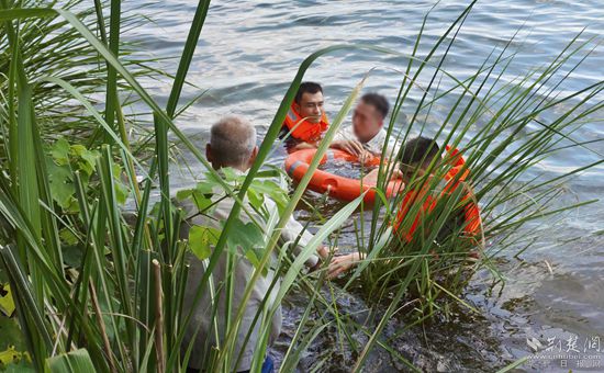 “當(dāng)時(shí)男子只有頭部露出水面,我有一米八,下水后腳下面是空的,根本不知道有多深?!碧鼐?duì)員毛寧說。當(dāng)時(shí)男子在水里很慌,毛寧與另一名隊(duì)員帶著救生圈游到他身邊,二人合力將男子拖出水面然后救上岸邊。