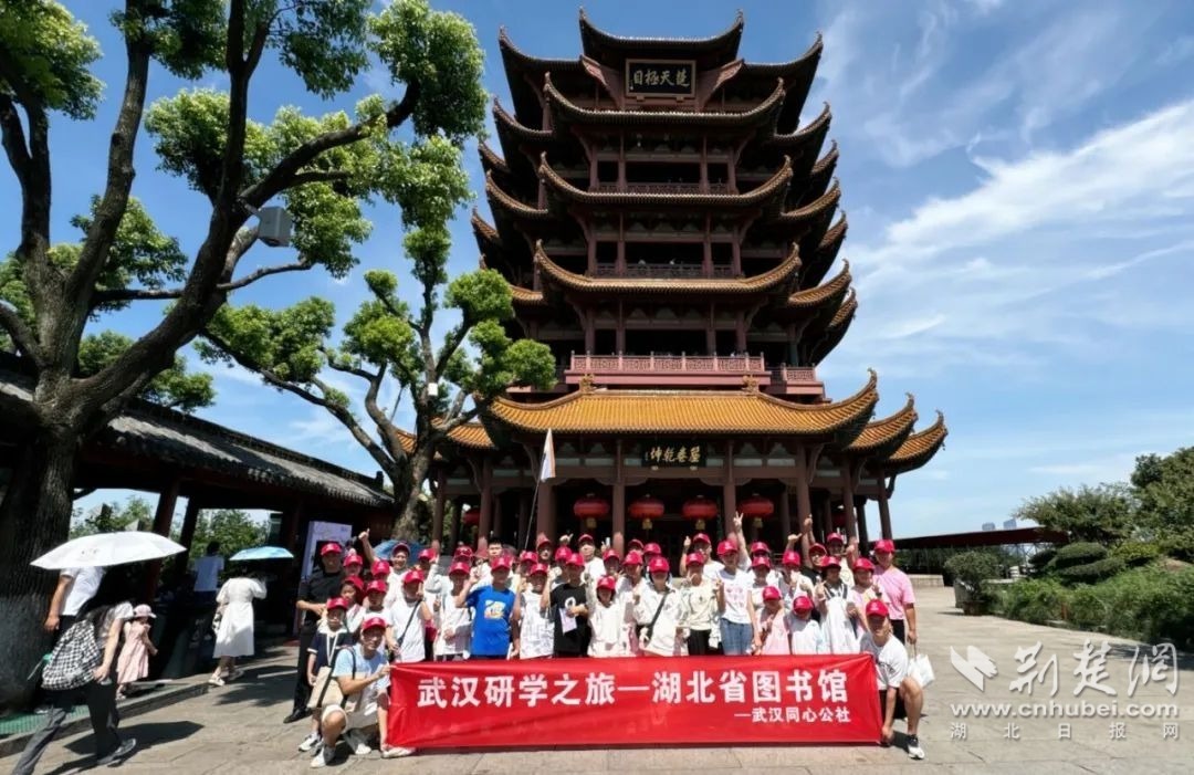 上午9:50分,12名武漢志愿者代表的孩子迎接11名來自大悟縣的同齡小朋友,在同心公社志愿者引導(dǎo)下,23名孩子手牽手一起走上黃鶴樓,兩地孩子開啟一段快樂的“結(jié)對游學(xué)之旅”。