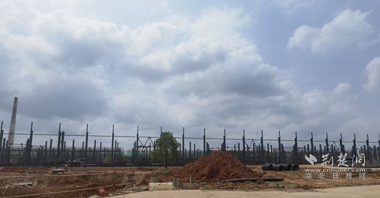 8月26日,咸寧高新區(qū)天府烤鹵施工項目現(xiàn)場,遠處巨大的場地上,鋼柱林立,刺破蒼穹,渾然列陣。