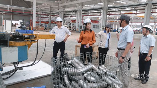 朱明鳳(左2)深入車間調研。 通訊員 供圖