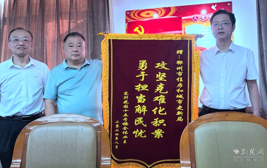 荊楚網(wǎng)(湖北日報網(wǎng))訊(記者王焱堯)攻堅克難化積案,勇于擔(dān)當(dāng)解民憂。8月30日上午,鄂州市東升花園小區(qū)15號樓業(yè)主代表周克東、胡德江給鄂州市住更局送去一面錦旗。