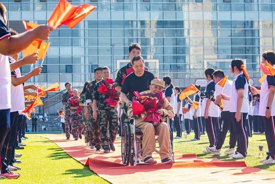 荊楚網(wǎng)(湖北日報(bào)網(wǎng))訊(記者呂鑒蕾、通訊員黃旺宣、范晨熠、李俊)9月29日,湖北師范大學(xué)附屬中學(xué)(黃石一中)操場,當(dāng)98歲的老兵由家人推著輪椅,緩緩走上紅地毯時(shí),現(xiàn)場爆發(fā)出雷鳴般的掌聲。