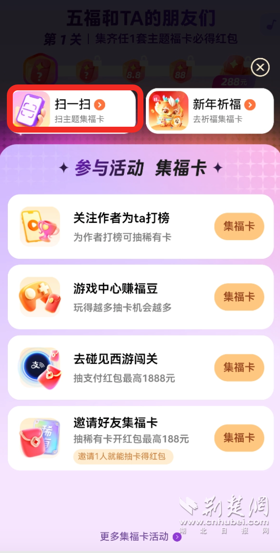 荊楚網(wǎng)(湖北日?qǐng)?bào)網(wǎng))訊 (通訊員 汪雨)1月20日,“數(shù)字新年俗”支付寶集福正式上線,此前披露的全新玩法獲得廣泛關(guān)注,記者體驗(yàn)發(fā)現(xiàn),今年集福的福卡確實(shí)“顏值”更高,玩法更具游戲感、用戶能獲得的權(quán)益也更豐富,跟過(guò)去9年比,這確實(shí)是一次全面的升級(jí)。
