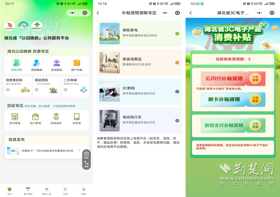 2、 選擇【3C數(shù)碼】,根據(jù)支付習(xí)慣領(lǐng)取補(bǔ)貼資格。選擇對應(yīng)支付渠道—提示彈框確認(rèn)—進(jìn)入3C電子產(chǎn)品補(bǔ)貼資格頁面—選擇對應(yīng)商品領(lǐng)取資格,并可查看活動規(guī)則提示。