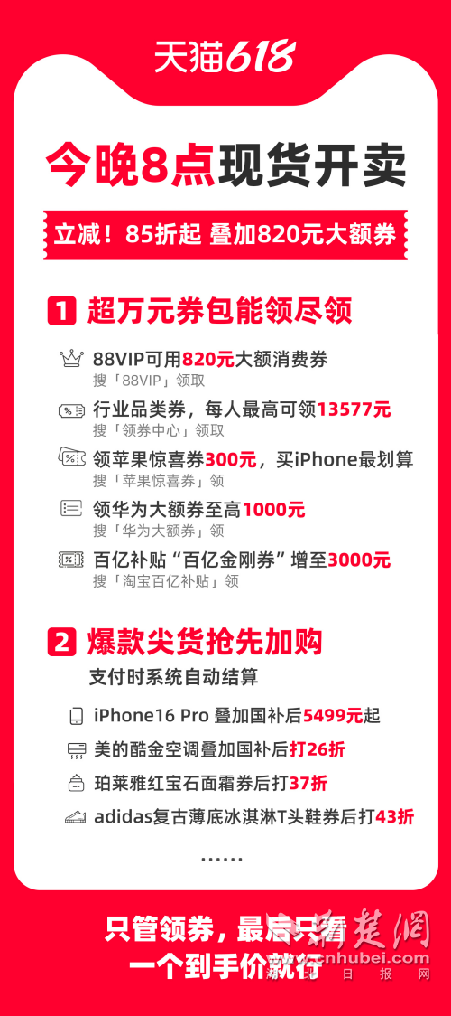荊楚網(wǎng)(湖北日報(bào)網(wǎng))訊(通訊員 朱飛)晚8點(diǎn),天貓618現(xiàn)貨開賣!
