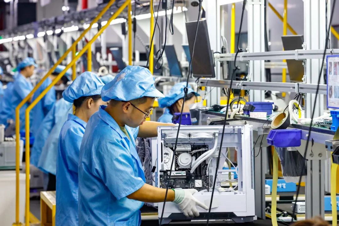 “星閃是新一代近距離無線連接技術,傳輸速度和抗干擾性遠超藍牙和Wi-Fi?!迸噬萍贾饕撠熑私榻B,攀升科技實現(xiàn)柔性化生產,讓生產線上每臺電腦都不一樣,顧客在網上下單,基本實現(xiàn)24小時內發(fā)貨,完全滿足用戶大規(guī)模個性化定制。