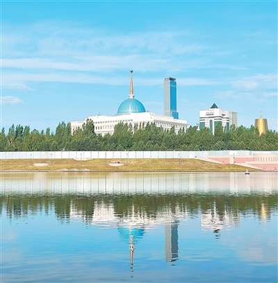 第二屆中國(guó)—中亞峰會(huì)日前在哈薩克斯坦首都阿斯塔納舉行,圖為阿斯塔納地標(biāo)性建筑總統(tǒng)府。新華社記者 李濤攝