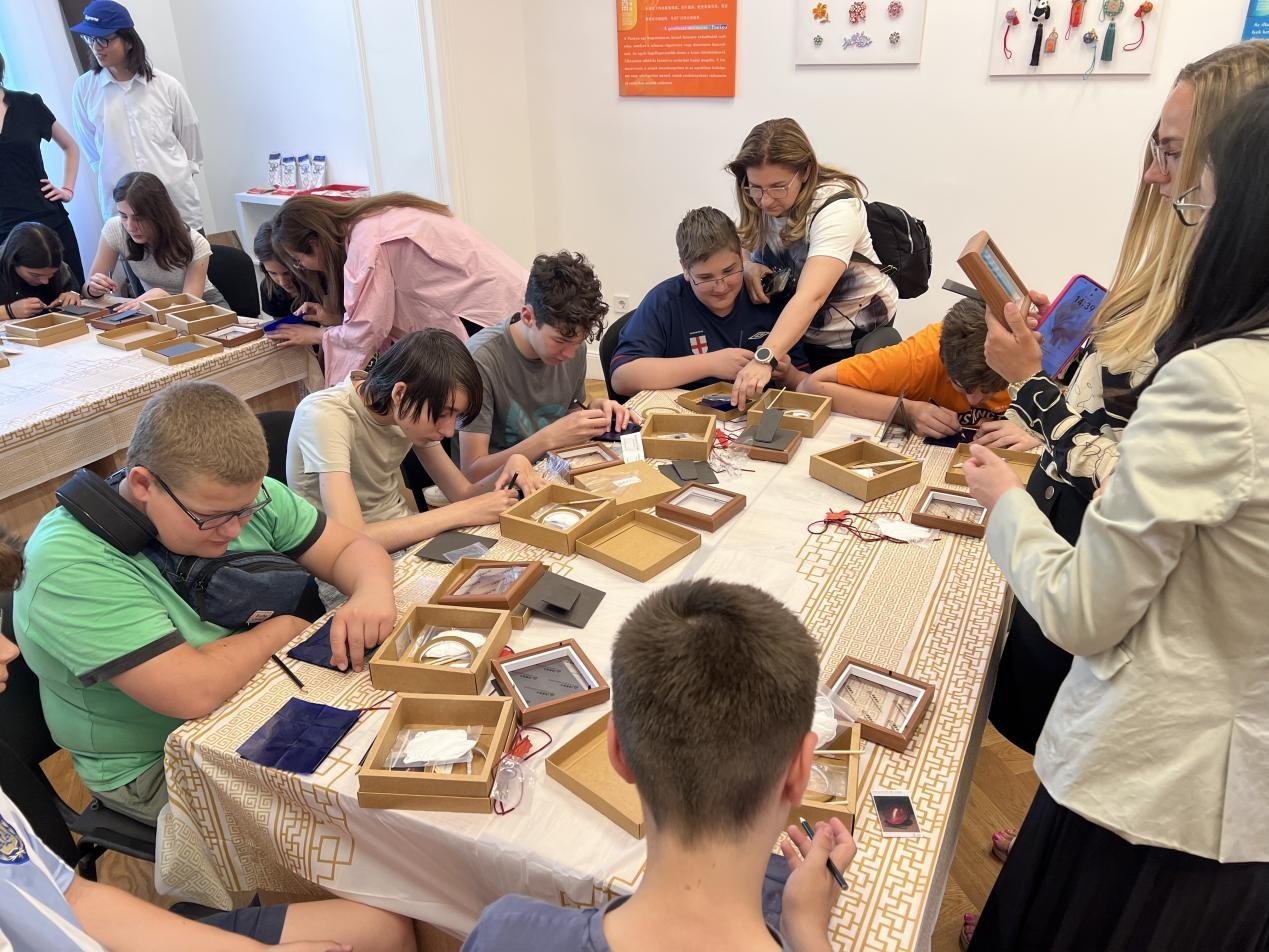 匈牙利學(xué)生參加漆器體驗(yàn)活動(dòng)。布達(dá)佩斯中國(guó)文化中心供圖