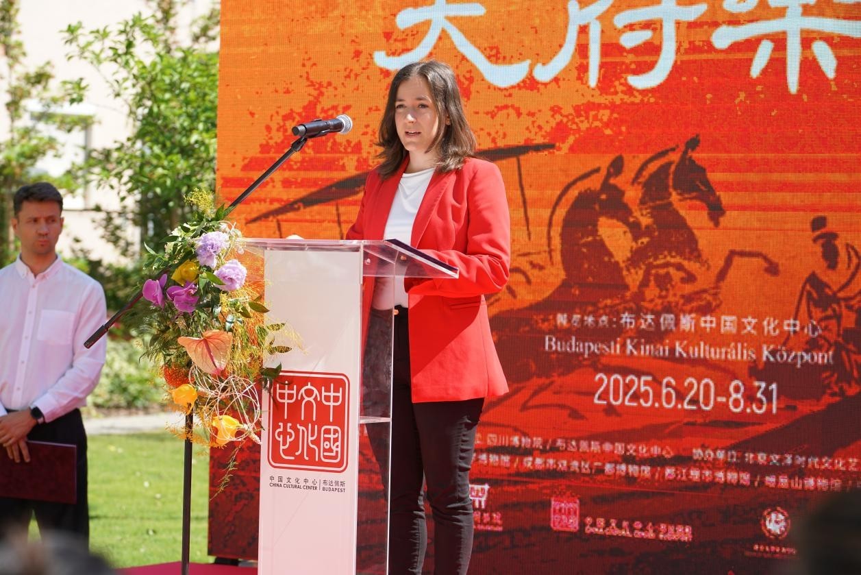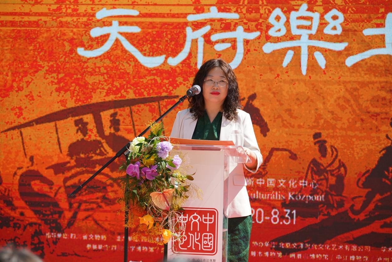 匈牙利國(guó)家博物館常務(wù)副館長(zhǎng)薩巴多斯-詹博爾·蘇珊娜致辭。布達(dá)佩斯中國(guó)文化中心供圖