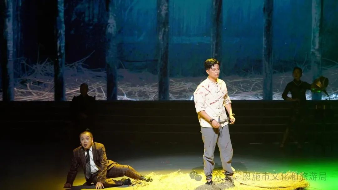 此次參加演出的演員們來自恩施市文化生態(tài)和非遺保護中心的中、青年演員,從歌手、舞蹈演員到舞臺劇演員,他們反復斟酌每一個人物角色。排練期間,針對每一句臺詞的情緒、眼神,反復討論練習,實現(xiàn)了從舞臺到歷史現(xiàn)場的跨越。歌手出身的男主角舒毅為精準呈現(xiàn)何功偉就義前的步伐,拖著數(shù)公斤鐵鏈反復體會行走姿態(tài),最終在舞臺上完成“100級臺階無一聲回應”的經(jīng)典場景,引發(fā)現(xiàn)場觀眾和線上網(wǎng)友無數(shù)次落淚。