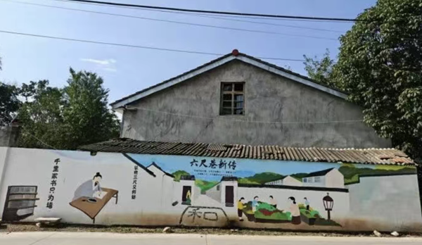 關廟集村委干部介紹,黃、龍兩家曾因耕地界限起糾紛,雖經(jīng)村委會多次調(diào)解達成協(xié)議,約定收割后正式打樁劃線,但兩家仍互不往來。轉(zhuǎn)機出現(xiàn)在8月中旬,湖北文理學院學生志愿者來村畫墻繪,村委會邀請兩家現(xiàn)場觀摩?!扒Ю锛視粸閴?,讓他三尺又何妨?!避S然于墻的六尺巷新傳墻繪,讓兩家村民內(nèi)心平靜了很多。