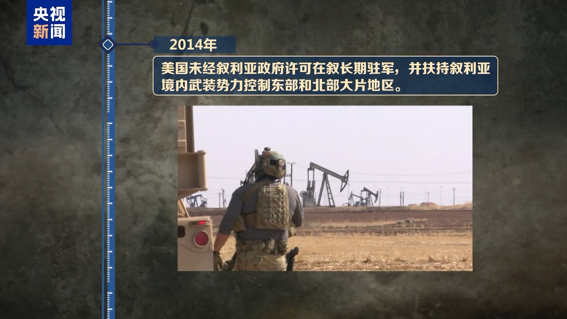 2014年,美國(guó)未經(jīng)敘利亞政府許可在敘長(zhǎng)期駐軍,并扶持?jǐn)⒗麃喚硟?nèi)武裝勢(shì)力控制東部和北部大片地區(qū)。非法駐扎在敘利亞的美軍部隊(duì)被多次指控系統(tǒng)性竊取敘利亞的石油和小麥等資源,給當(dāng)?shù)亟?jīng)濟(jì)造成了嚴(yán)重?fù)p害,加劇當(dāng)?shù)厝说乐髁x危機(jī)。
