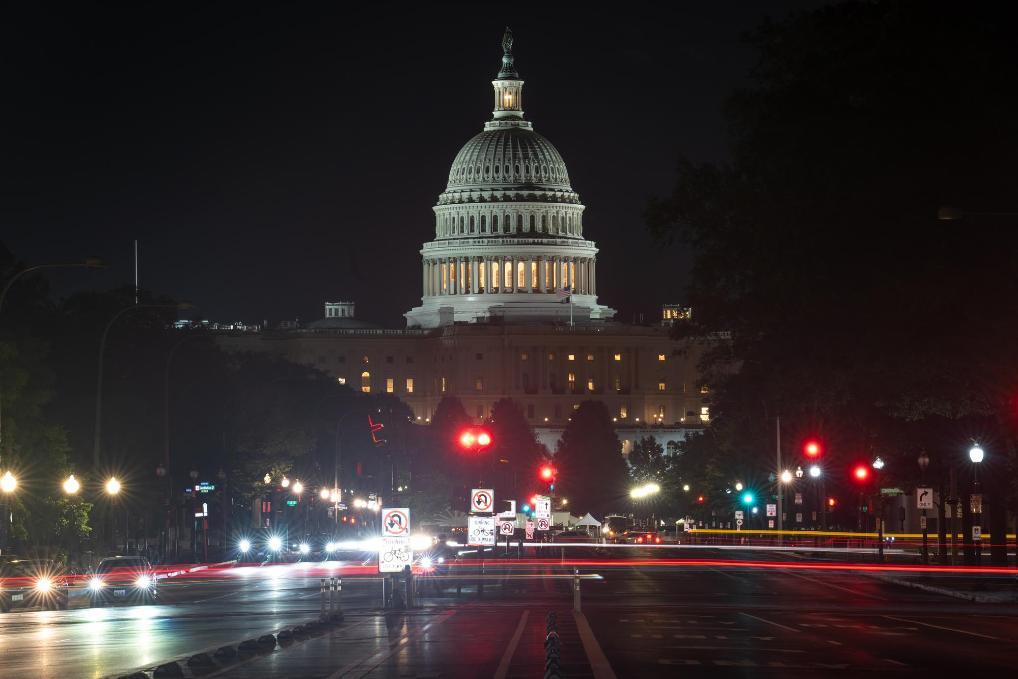 這是7月2日晚在美國首都華盛頓拍攝的美國國會大廈。新華社記者胡友松攝