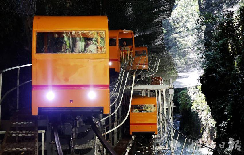 在這里,將開啟一場(chǎng)2400米的云端地心之旅——車窗化作天然IMAX銀幕,飛瀑在腳下碎成鉆石雨,巖層紋路里凝固著遠(yuǎn)古海浪,霧氣中突然探頭的彩虹帶來驚喜;200米落差間,軌道車以恰到好處的速度穿梭,每個(gè)轉(zhuǎn)彎都成為與石壁的驚鴻一吻,13分鐘航程里腎上腺素與視覺震撼同步飆升。