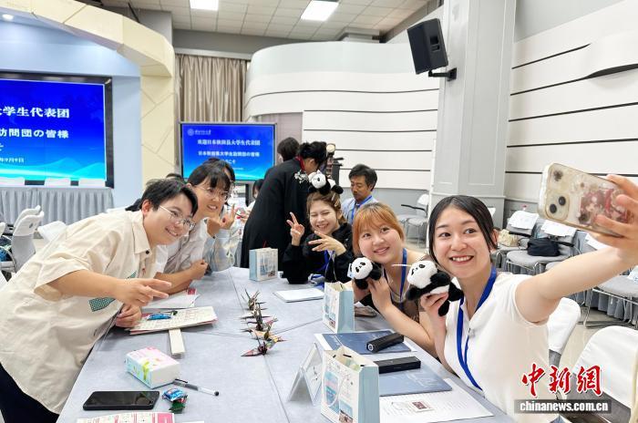 9月9日,日本秋田縣大學(xué)生代表團與西北師范大學(xué)學(xué)生進行交流互動,秋田大學(xué)學(xué)生兼田姬梨(右一)與新朋友們合影留念。中新社記者 丁思 攝