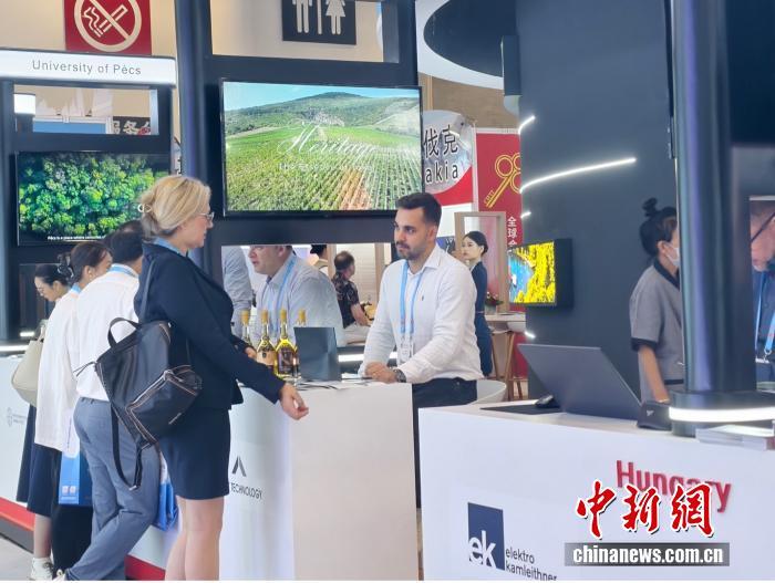 2025年9月8日至11日,第二十五屆中國國際投資貿(mào)易洽談會在福建廈門舉行,吸引120多個國家和地區(qū)前來參展,圖為匈牙利國家館前,參會者同工作人員交談。記者 林卓瑋 攝