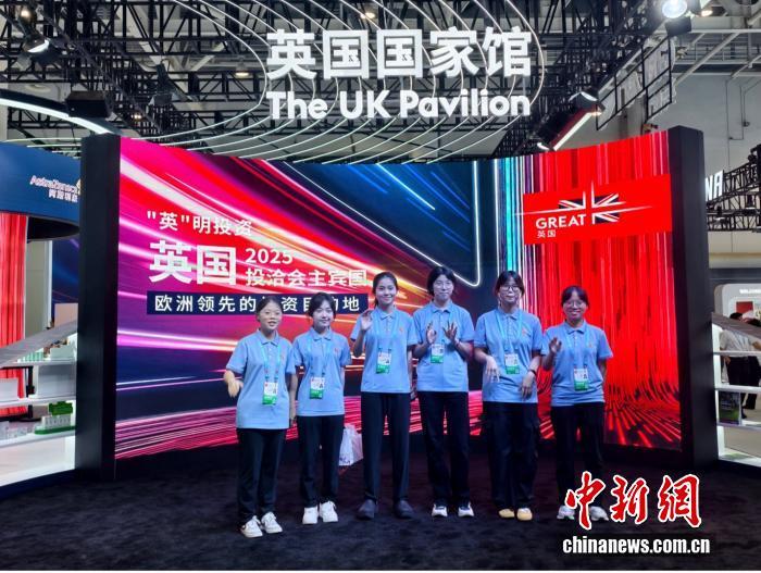 2025年9月8日至11日,第二十五屆中國國際投資貿(mào)易洽談會在福建廈門舉行,吸引120多個國家和地區(qū)前來參展,圖為志愿者在主賓國英國國家館前合影留念。記者 林卓瑋 攝