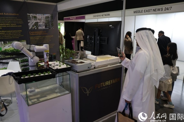 在展覽現(xiàn)場,多家中國企業(yè)展示的新產(chǎn)品和新技術(shù)受到中東客商歡迎。一家位于深圳的照明企業(yè)研發(fā)的LED燈光系統(tǒng),能夠通過調(diào)整光譜組合和光照強(qiáng)度,優(yōu)化農(nóng)作物的產(chǎn)量和質(zhì)量;另一家位于中國香港的企業(yè)帶來的全自動(dòng)移栽和播種機(jī)械臂,能夠有效提高垂直農(nóng)場耕作效率,將智慧農(nóng)業(yè)里面引入其中?!爸袊诖怪鞭r(nóng)業(yè)領(lǐng)域技術(shù)優(yōu)勢明顯,我們希望與中國企業(yè)開展更多合作。”阿聯(lián)酋無土栽培農(nóng)場經(jīng)理阿姆賈德·奧馬爾對記者說。