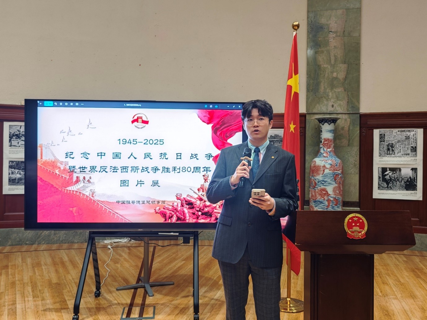 人民網(wǎng)斯德哥爾摩9月12日電 (記者殷淼)9月12日,中國(guó)駐哥德堡總領(lǐng)館隆重舉辦紀(jì)念中國(guó)人民抗日戰(zhàn)爭(zhēng)暨世界反法西斯戰(zhàn)爭(zhēng)勝利80周年圖片展和招待會(huì)。領(lǐng)區(qū)僑胞、留學(xué)生和社會(huì)各界人士300余人出席,中國(guó)駐哥德堡總領(lǐng)事楊培棟現(xiàn)場(chǎng)致辭。