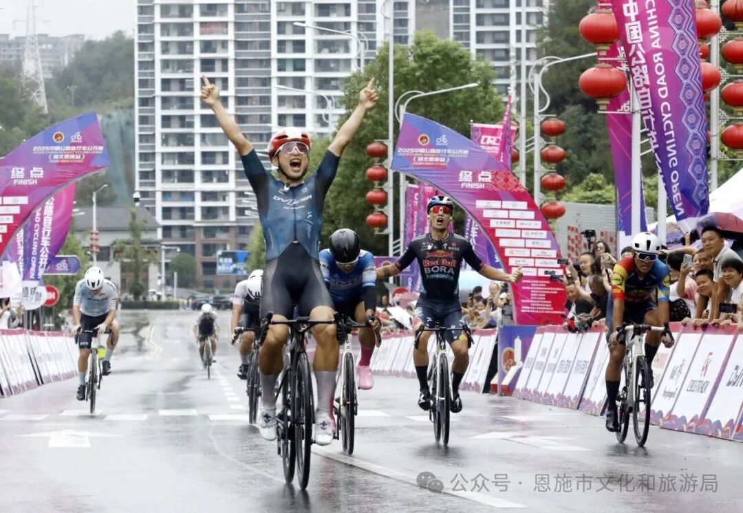 2025年中國公路自行車賽(湖北恩施站)第一賽段所有比賽圓滿結(jié)束,經(jīng)過激烈角逐,跡馳-瑞豹車隊獲得俱樂部組團體積分第一名,來自跡馳-瑞豹車隊的VLADISLAY SOZINOV最終憑借強勁的沖刺能力摘得桂冠,被授予白衫,來自GUSTO SUPERTEAM車隊的VITALII和重慶南岸風騎捷安特車隊的BLOKHIN IVAN 分獲二、三名;男子精英組、大學生組、青少年組及女子精英組冠軍分別由來自恒宇單車的馮浩然、任中昊、DYC-晟亦青訓選手方宇軒和Bigrock大石魅騎廠隊張婷婷獲得。