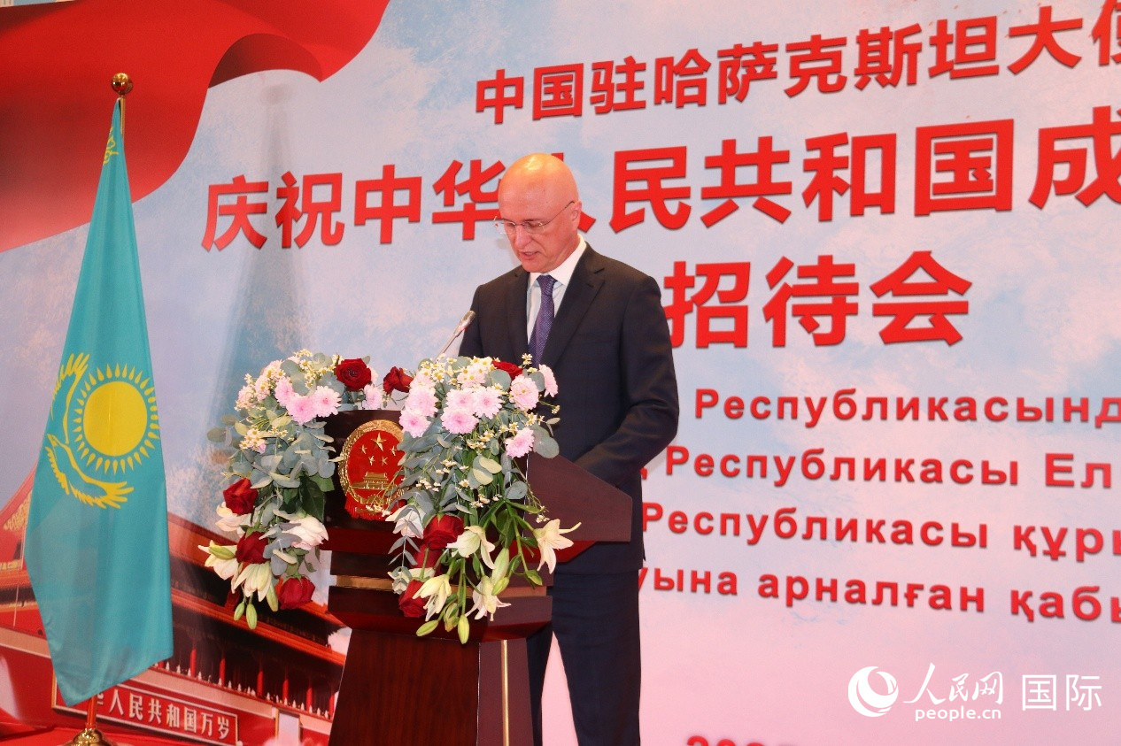 韓春霖致辭回顧新中國(guó)取得輝煌發(fā)展成就,并強(qiáng)調(diào),中國(guó)成功打贏脫貧攻堅(jiān)戰(zhàn),全面建成小康社會(huì),正意氣風(fēng)發(fā)向著全面建成社會(huì)主義現(xiàn)代化強(qiáng)國(guó)的第二個(gè)百年奮斗目標(biāo)奮進(jìn)。中國(guó)提出全球治理倡議,推動(dòng)構(gòu)建更加公正合理的全球治理體系。中哈將繼續(xù)發(fā)揮元首外交戰(zhàn)略引領(lǐng),推動(dòng)兩國(guó)關(guān)系不斷邁上新臺(tái)階。