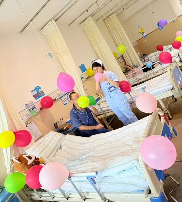 跟著這個方法練習(xí),楊叔叔的進步肉眼可見:從一開始只能吹鼓小半只氣球,到后來能連續(xù)吹完兩三只;從吹氣球時會忍不住咳嗽,到胸口的緊繃感越來越輕,甚至能自己繞著病房走兩圈。如今,走進楊叔叔的病房,粉、紫、綠、紅的氣球隨處可見,成了病房里最亮眼的裝飾?!澳憧?,這都是我這幾天吹的,每個護士進來都會說好看,隔壁床病友也覺得好看!” 楊叔叔說起這些氣球,語氣里滿是自豪。