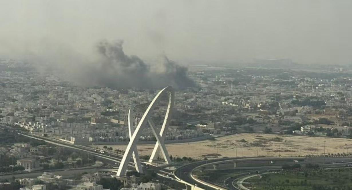 9月9日,多哈北部,遭襲擊現(xiàn)場(chǎng)濃煙四起。