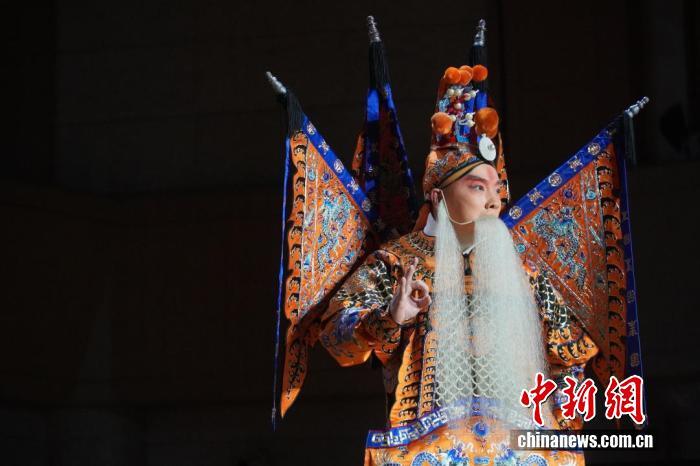 京劇演員譚正巖在音樂會上表演京劇《定軍山》片段。中新網(wǎng)記者 魏晨曦 攝