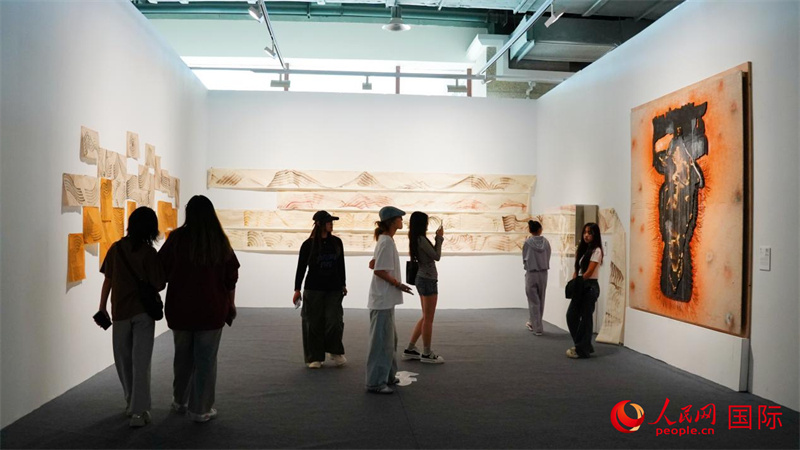 該展廳呈現(xiàn)意大利藝術(shù)家馬泰奧、羅馬尼亞藝術(shù)家安德烈婭、加拿大藝術(shù)家米歇爾、剛果(金)藝術(shù)家卡拉瑪與中國藝術(shù)家陳明坤作品。人民網(wǎng) 嚴小晶攝