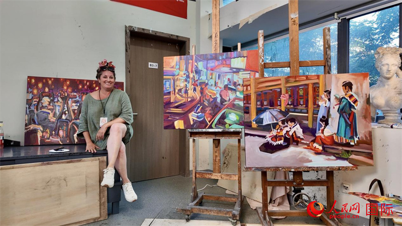 加拿大藝術(shù)家米歇爾在中國美術(shù)學院畫室創(chuàng)作。人民網(wǎng) 嚴小晶攝