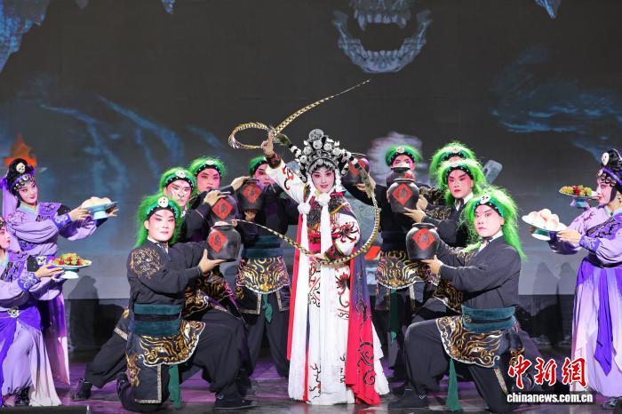 9月23日晚,浙江婺劇團雅加達專場上演。圖為經(jīng)典大戲《三打白骨精》。中新社記者 李志全 攝