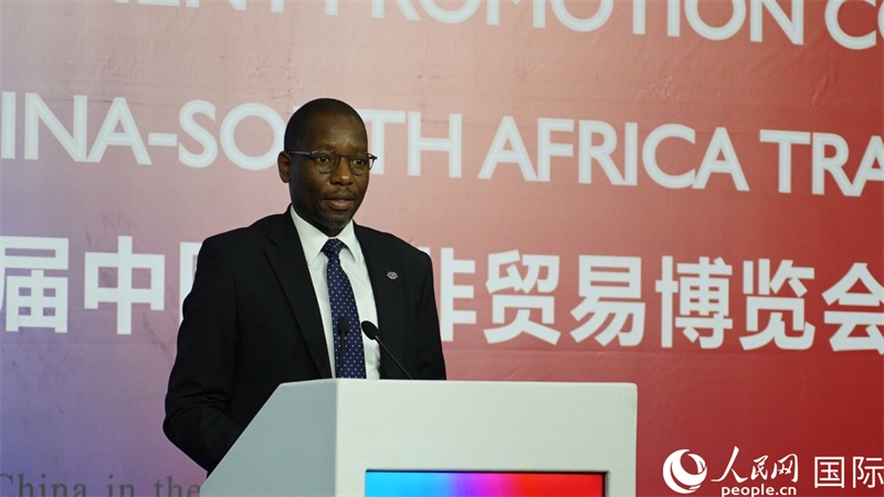 南非貿(mào)工部副部長(zhǎng)祖科·戈德林皮致辭。人民網(wǎng) 劉暢攝