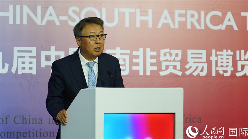 人民網(wǎng)約翰內(nèi)斯堡9月24日電 (劉暢) 9月23日,中國(guó)駐南非使館與南非貿(mào)工部在約翰內(nèi)斯堡加拉格爾會(huì)展中心聯(lián)合舉辦南非—中國(guó)貿(mào)易投資促進(jìn)大會(huì)暨第九屆中國(guó)—南非貿(mào)易博覽會(huì)開幕式。中南兩國(guó)企業(yè)、商協(xié)會(huì)和政府部門代表共約600人參會(huì)。