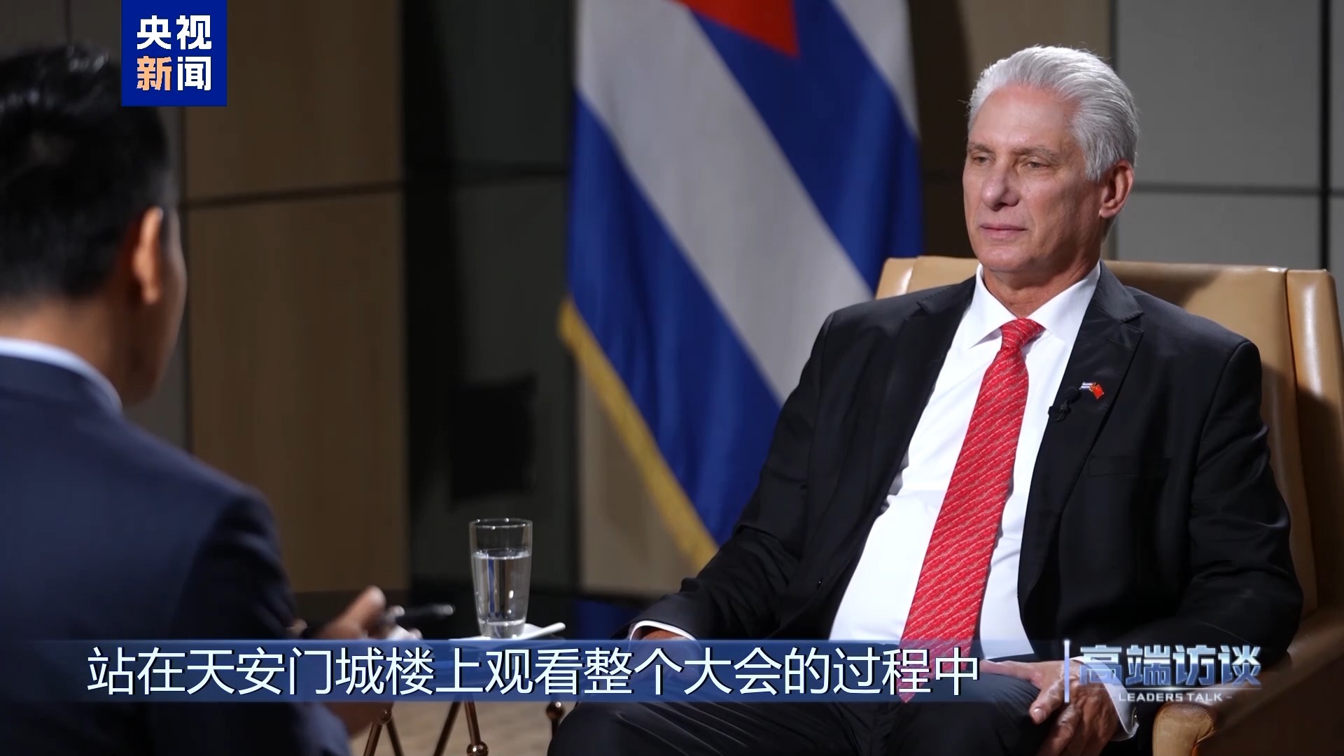 何巖柯:主席先生您好!很高興您再次接受《高端訪談》的專訪。這次來華,您出席了紀(jì)念中國(guó)人民抗日戰(zhàn)爭(zhēng)暨世界反法西斯戰(zhàn)爭(zhēng)勝利80周年大會(huì)。我注意到在大會(huì)之后您第一時(shí)間在社交媒體上寫下了自己的感受。您說,“中國(guó)引領(lǐng)捍衛(wèi)多邊主義與全球治理的斗爭(zhēng),古巴為支持并踐行這些理念而自豪,并且榮幸出席紀(jì)念活動(dòng)”。所以首先想請(qǐng)您來分享一下,站在天安門城樓上觀看整個(gè)大會(huì)的過程中,您是一種什么樣的感受?