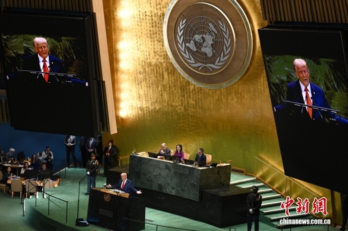 當(dāng)?shù)貢r(shí)間9月23日,紐約聯(lián)合國總部,第80屆聯(lián)合國大會(huì)一般性辯論開幕。圖為美國總統(tǒng)特朗普發(fā)言。中新社記者 陳孟統(tǒng) 攝
